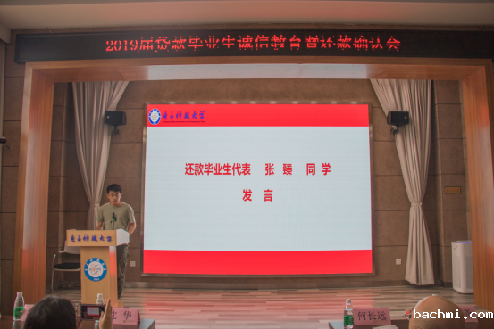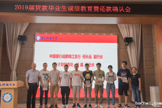 6月11日上午,学校在清水河校区学生活动中心二楼九洲厅举行2019届贷款毕业生诚信教育暨还款确认会。中国银行锦江支行何长远副行长、消费信贷部王尧主任、个人金融部吴超主任、公共管理学院沈华教授、下载伟德软件并安装计划财务处汪晶副处长、党委学生工作部李媛副处长出席了本次诚信教育大会。