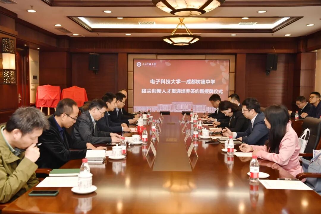 5月10日,成都树德中学党委书记、校长胡霞一行到访清水河校区,副校长孔令讲、中国工程院院士邓龙江出席双方座谈会,会上举行了下载伟德软件并安装—成都树德中学拔尖创新人才贯通培养签约暨授牌仪式,会议由教务处处长黄廷祝主持。