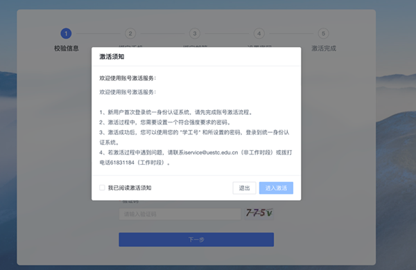 (2)密码:统一身份认证账号首次使用需激活,激活时自行设置密码,激活链接:http://idas.uestc.edu.cn/retrieve-password/accountActivation/index.html#/