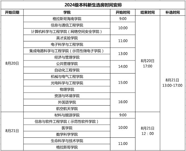 5. 请同学们仔细查看本学院选房时间。错过选房时间段的同学,可在8月21日下午进行补选。