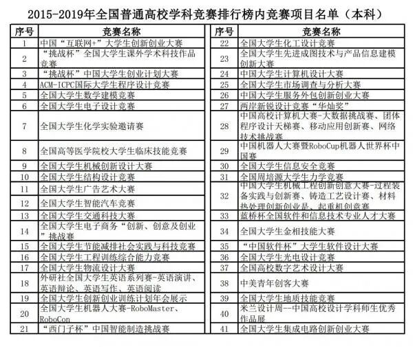 自2017年12月14日首次发布普通高校学科竞赛评估结果以来,中国高等教育学会《高校竞赛评估与管理体系研究》专家工作组已连续4年发布榜单,在社会上引起广泛关注。截至2019年,纳入本科学科竞赛排行榜的竞赛项目已增至41项,全国共1172所本科院校进入排行榜。
